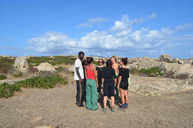 Il primo risultato prodotto dal workshop è un evento performativo aperto al pubblico, una performance itinerante nel Parco dell'Asinara della durata di circa 2 ore con interventi scientifici, danza, narrazione. La performance è creata e interpretata dal gruppo di lavoro (docenti e artisti) compresi i partecipanti al workshop (Rifugiati, Richiedenti Asilo, Giovani, Studenti, Performer).